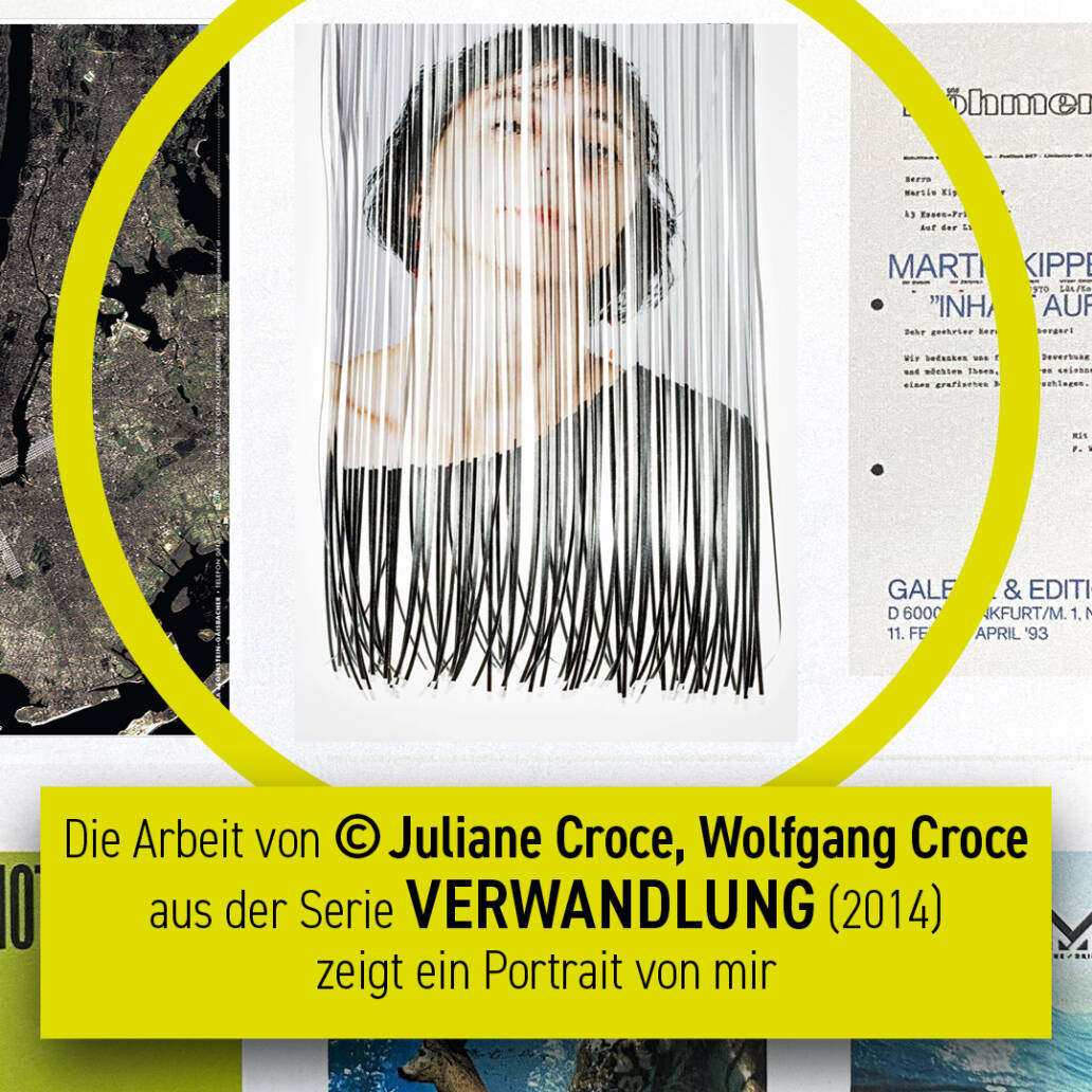 Bei der Ausstellung ist auch Juliane Croce & Wolfgang Croce vertreten, mit einem Sujet aus der Serie VERWANDLUNG (2014) – das Motiv zeigt ein Portrait von mir – wie cool ist das denn?