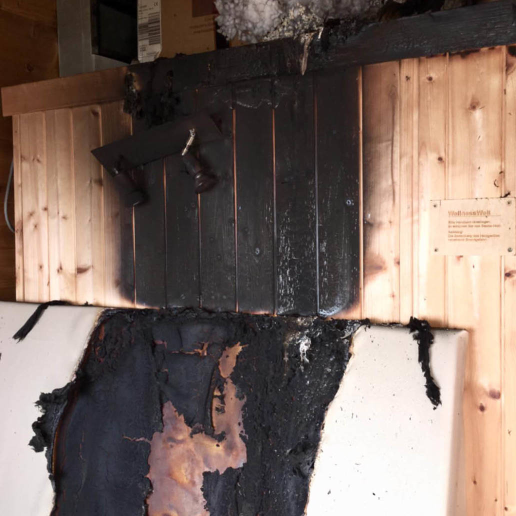 Wenige Tage danach brach in der Sauna Feuer aus. Vermutlich wegen Sauerstoffmangel erlosch das Feuer jedoch von selbst.