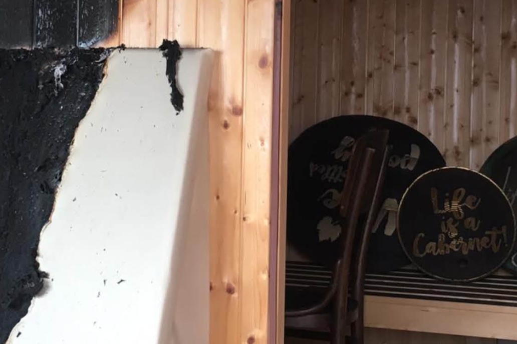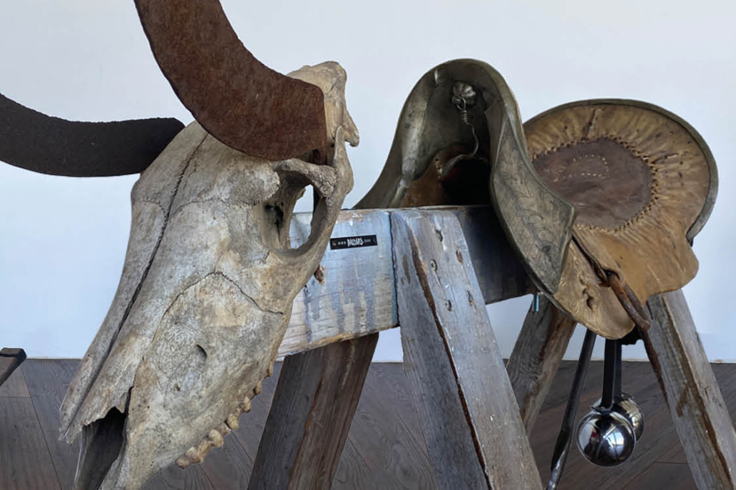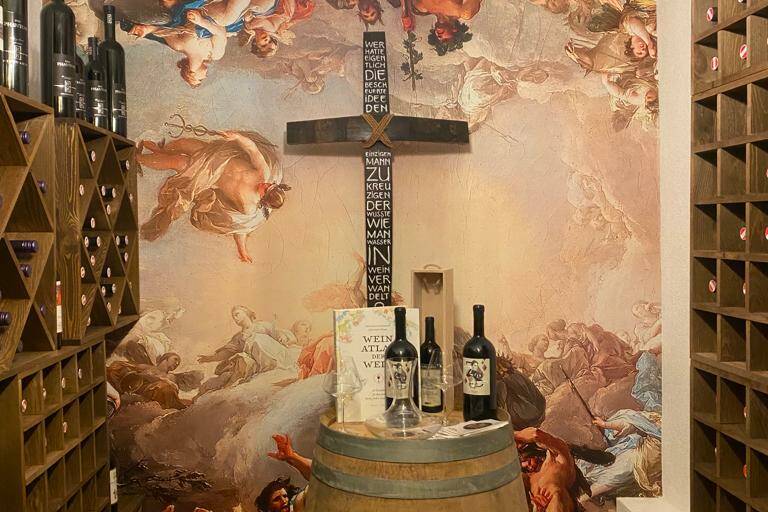 Fassdauben-Kreuz als Wanddekoration im Berghotel BASUR